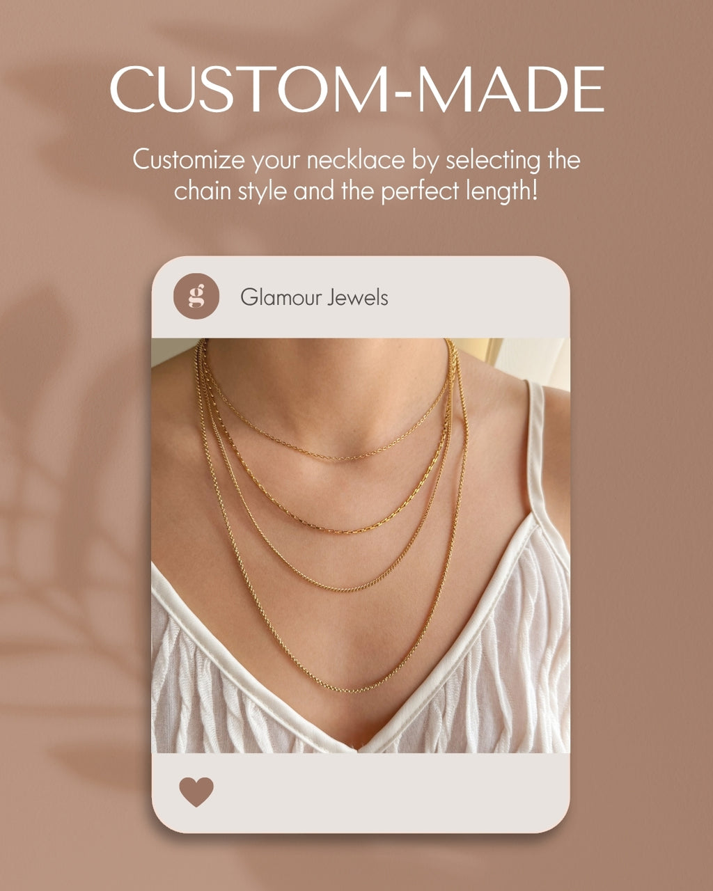 The model is wearing the necklace in 45cm (18in) length. To choose the perfect length for your style, check out our size guide below.